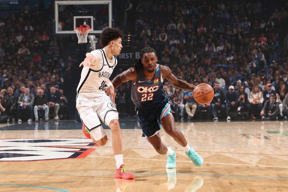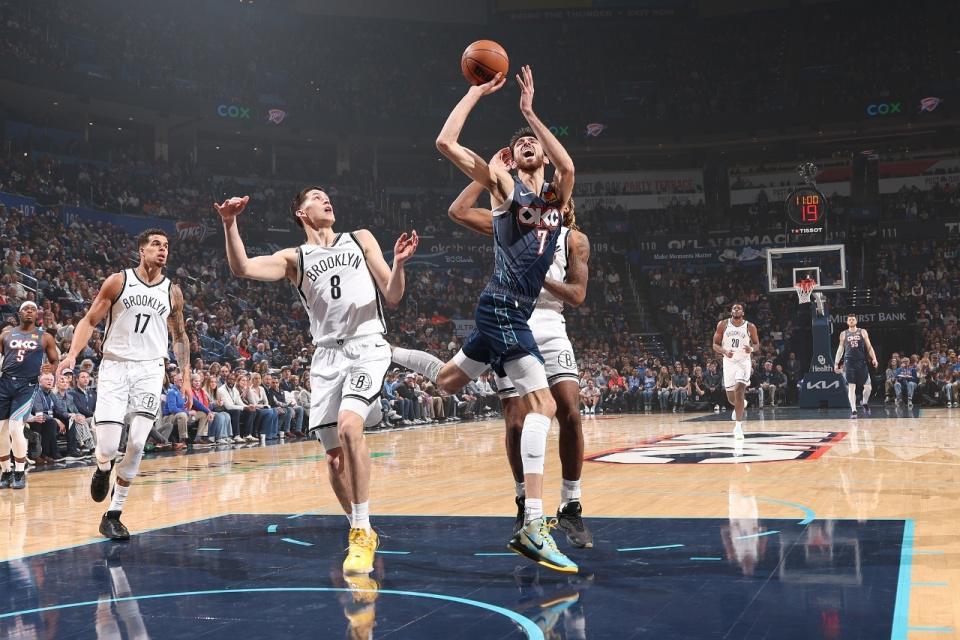 雷霆上一场主场93-110输给雄鹿,篮网过去两场连输步行者与骑士遭遇2连败。本场雷霆缺少亚历山大、杰伦与米切尔,篮网缺少克拉克斯顿与威廉姆斯。首节开局双方交替领先,雷霆在10-8领先情况下,篮网一波6-0攻势反超比分,雷霆连得5分夺回领先。篮网多点开花一波9-2攻势反超6分,雷霆连追4分,首节结束雷霆21-23落后篮网。首节雷霆被限制仅22中6,其中三分9中3,霍姆格伦7分;篮网21中9,其中三分10中1,波特6+3。